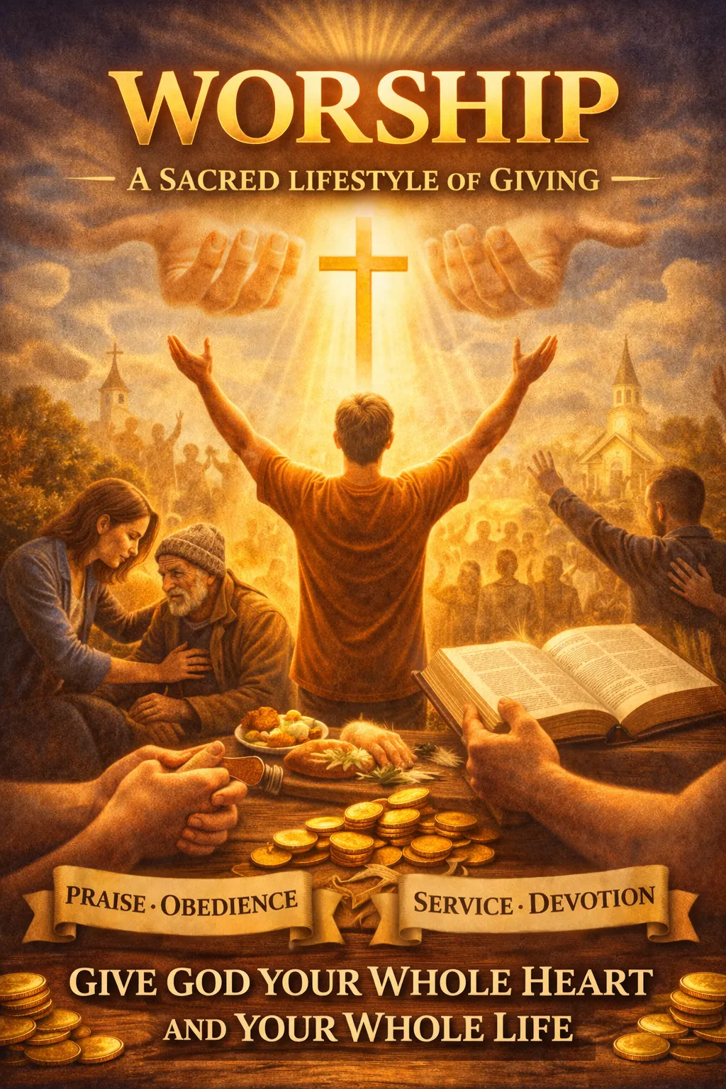 Worship is a also giving God from our hearts, our hands, our time, and our lives because God is worthy of our total surrender (Romans 12:1; John 4:23–24). Worship is also the giving of yourself and to others, as we serve God’s people with compassion, humility, and love, expressed through praise, obedience, service, and sacrificial devotion as living vessels through which God’s presence and power can touch, heal, and restore destinies.